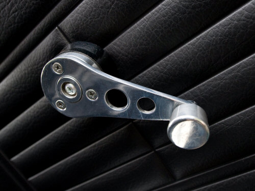 The specification for the mini required it to have a late 1970's feel to the interior, we chose the Momo Prototipo steering wheel in leather with silver detail to match the Italian handmade Nurburgring RS seats, which are black leather with corduroy centres, the rear seat is re-trimmed to match. The polished handles complement the steering wheel while the black flocked dash panel, with matching column surround and switch panel paired with the custom red headlining give a sporty feel, matching the Scalextric image. To finish off the interior, a modern 4 speaker powered stereo is installed, mostly hidden with audiophile sound quality.
